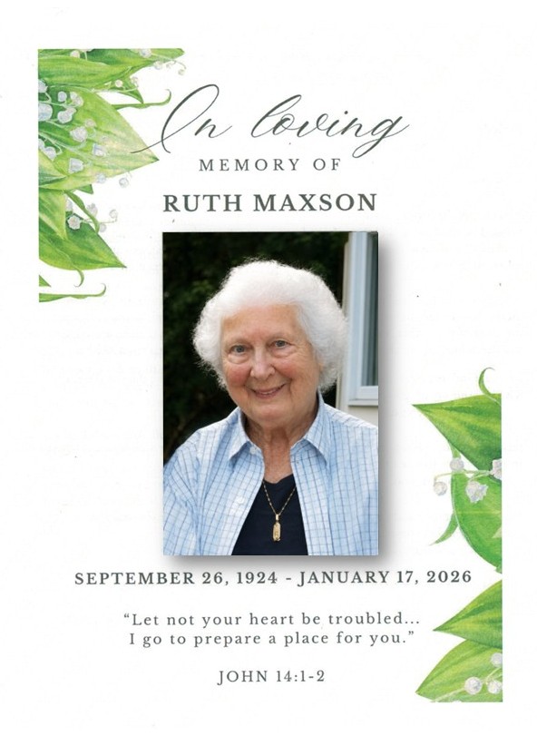 January 17, 2026 my Mom passed away at the age of 101. Below are links to her obituary on Legacy.com, the program from her memorial service, and a link to a YouTube video that includes a 15 minute slideshow, a short tribute slideshow with piano accompanyment written and performed by Mom’s daughter-in-law Leona Francombe, and the full memorial service.